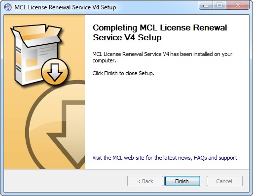 12. The MCL-License Renewal Service v4's installation process is complete. Click to conclude.