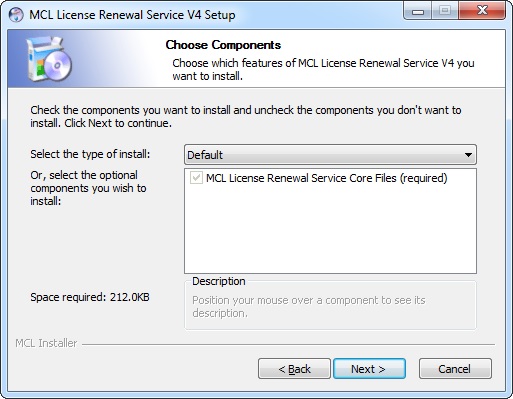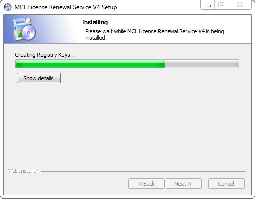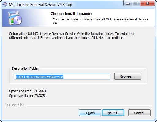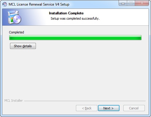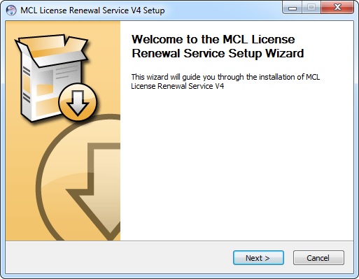 2. Run the installer file and follow the instructions in "MCL-License Renewal Service Setup" wizard: