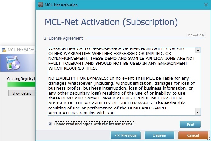 The MCL-Net v4 installation begins and, at the same time, you are asked to proceed with the MCL-Net v4 subscription activation: