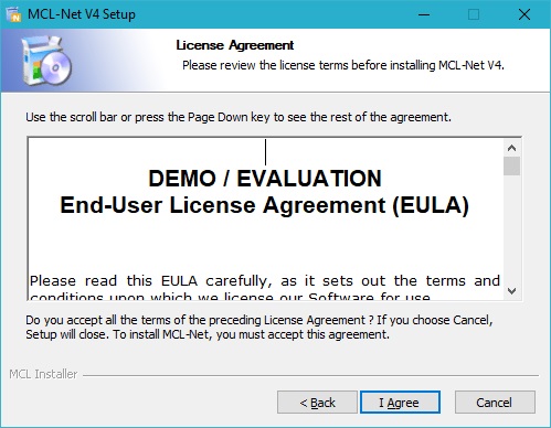 2. Run the installer file and follow the instructions in the MCL-Net v4 Setup wizard: